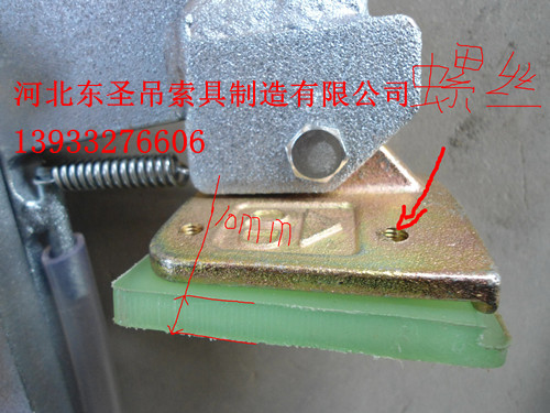河北东圣吊索具制造有限公司生产厂家拍摄石材夹具产品细节可见,石材夹具夹皮与铁夹板之间铆接方式为螺钉连接。你是否发现,没有螺母只有螺钉?一个直径5mm,长度10mm的螺钉能保障夹皮不掉?没有螺母怎么起到固定螺钉作用?滑落是肯定的吧?